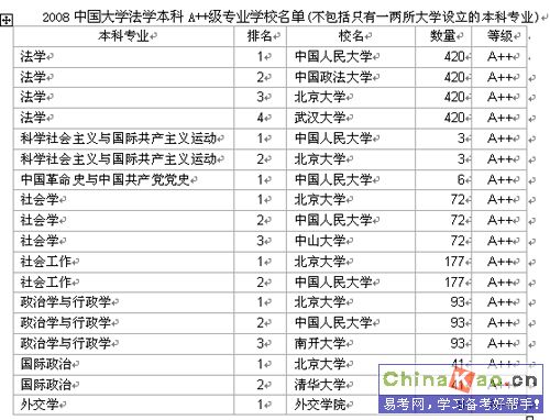 下列法学各本科专业A++级学校名单,是优秀考生选择的方向。
