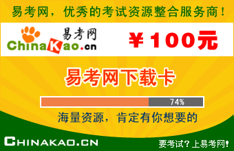 易考网[ChinaKao.cn],中国领先的考试资源整合提供者,致力于建设成为专业的考研网、公务员考试、英语考试等教育考试领域领航者。本站致力于提供大量免费资讯资料,所有考友可以免费参阅。同时作为专业的教育网站我们投入专业人力不断整合提升资料资讯的权威性及可参考性,大量人力及资金的投入孕育了收费模式的出现。通过充值卡在线充值后,您将获得更多权威有效的信息资料: